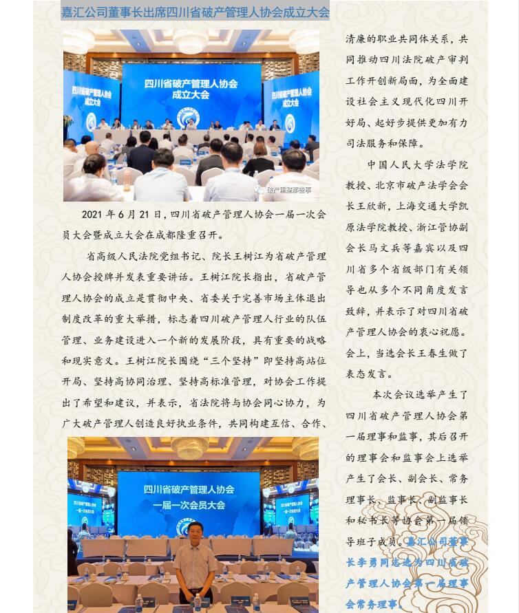 嘉匯公司董事長出席四川省破產(chǎn)管理人協(xié)會成立大會